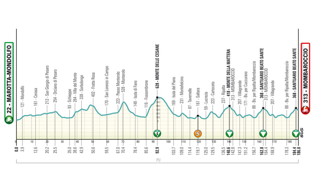 5. Etappe | Marotta–Mondolfo – Mombaroccio | 186 km | 3.900 hm