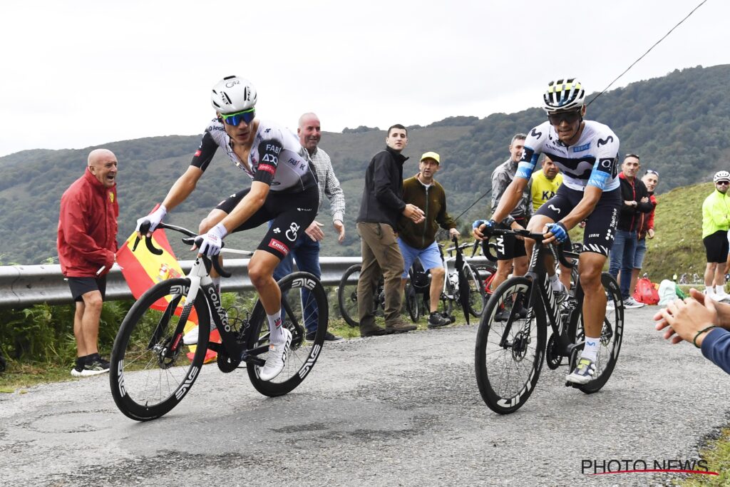 In der Verfolgergruppe spannte sich Marc Soler (UAE Team Emirates-XRG) vor seinen Teamkollegen Juan Ayuso und fuhr diesen mit einem brutal gleichmäßigen Tempo zu Spitze vor. Drei Kilometer vor dem Gipfel hatten sie die Ausreißer eingeholt und Ayoso attackierte sofort drüber. Nur Javier Romo (Movistar) ging mit, Pickering und Rolland jagten dahinter.