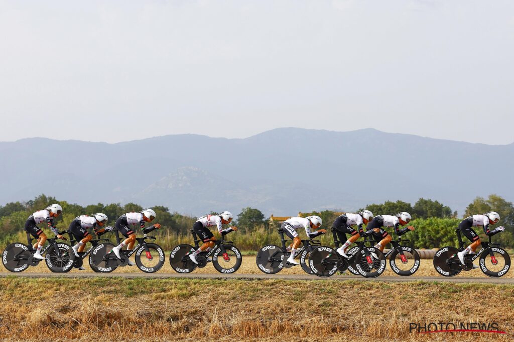 Lotto eröffnete den Wettbewerb um 16:37 Uhr und fuhr eine Durchschnittsgeschwindigkeit von 55,9 km/h und eine Zeit von 25:35 Minuten die logischerweise nicht nur die Bestzeit ar, sondern auch lagne hielt. Lange sah es so aus, als würde diese Vorgabe Bestand haben, denn auch Jayco AlUla war 17 Sekunden langsamer fahren. Erst Lidl-Trek mit Mads Pedersen und Giulio Ciccone fuhr mit 25:35 Minuten eine neue Bestzeit.