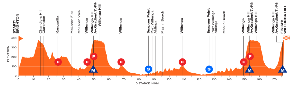 4. Etappe | 24. Januar 2026 | Brighton – Willunga Hill | 176,0 km | 2.492 Hm