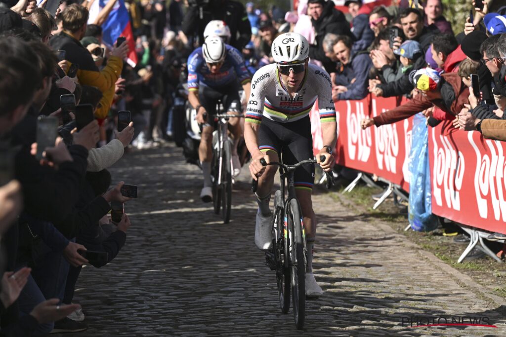 Der dreimalige Zeitfahrweltmeister gab alles, um zurückzukommen. Am Fuße des Koppenbergs hatte Evenepoel noch fünf Sekunden Rückstand auf das Führungsduo. Pogačar fuhr auch diesen legendären Helling von vorne und die Lücke zu Evenepoel größer wurde. Der belgische Olympiasieger hatte oben 20 Sekunden Rückstand. Dahinter folgten van Aert und Pedersen mit einem Rückstand von über 50 Sekunden.