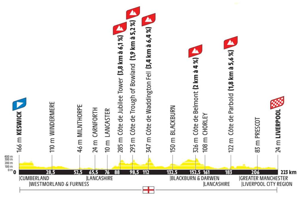 2. Etappe Tour de France 2027 | Keswick – Liverpool | 223 km | 2.800 hm
