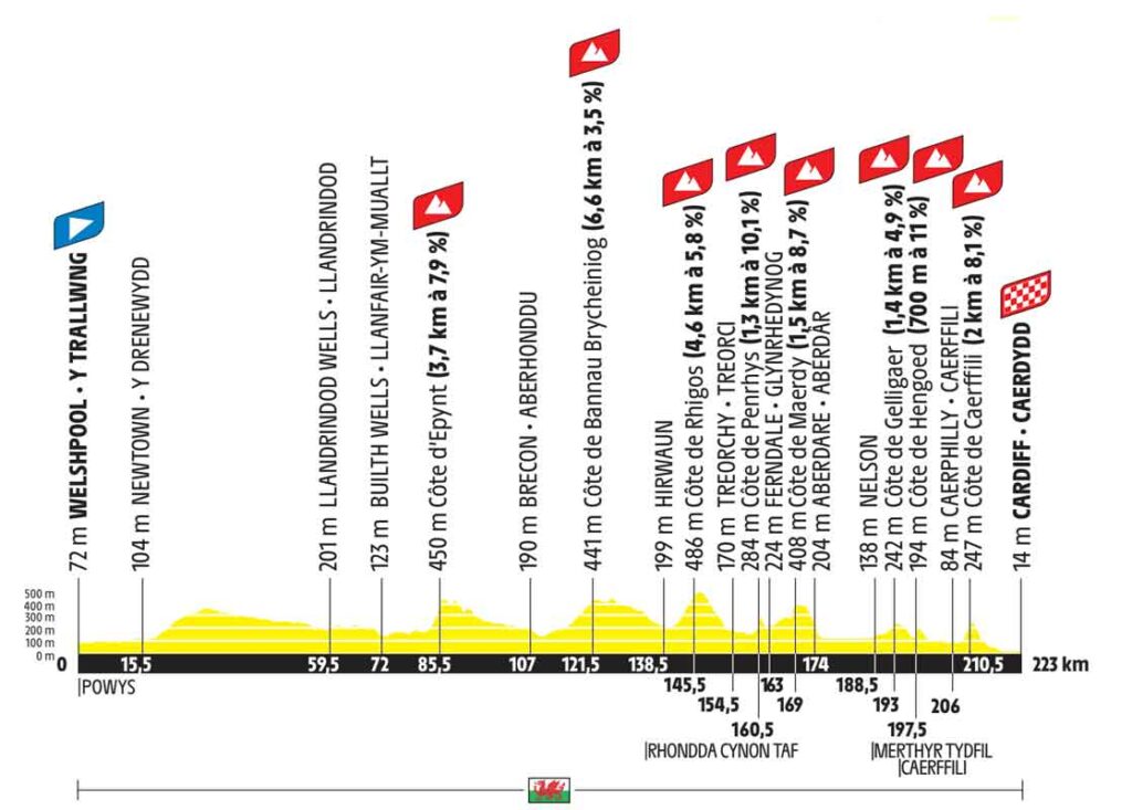 3. Etappe Tour de France 2027 | Welshpool – Cardiff | 223 km | 3.000 hm