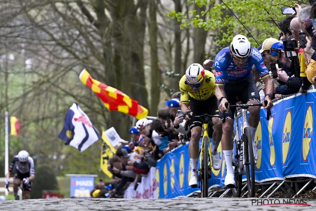 An der letzten Kemmelberg-Passage forcierte van der Poel erneut, diesmal so scharf, dass Florian Vermeersch abreißen lassen musste. Van Aert biss sich jedoch fest, und plötzlich lief alles auf das lange erwartete Duell der beiden Klassikergrößen hinaus. Das Duo arbeitete stark zusammen und nahm die letzten Kilometer mit einem Vorsprung in Angriff, während dahinter vor allem Decathlon CMA CGM Team, Red Bull-Bora-Hansgroheund Lotto-Intermarché die Nachführarbeit organisierten. Der Rückstand schmolz dennoch nur langsam, was die Spannung bis tief in die Schlussphase hochhielt.