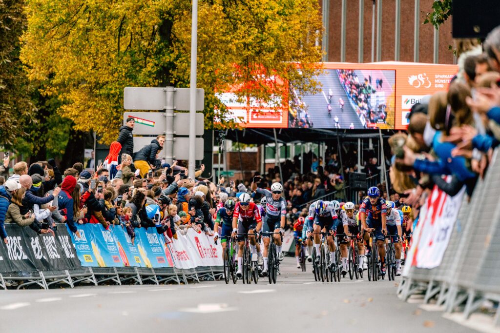 In Münster wartete nach der ersten Passage der Ziellinie das Finale über drei Stadtrunden, in denen das Tempo weiter anzog. Das nasse Kopfsteinpflaster und glatte Fahrbahnmarkierungen machten die Positionskämpfe heikel. Rund 7 Kilometer vor Schluss kam es i zum entscheidenden Sturz, in den auch Europameister Tim Merlier (Soudal-Quick-Step) verwickelt war – der Belgier und zahlreiche weitere Fahrer verloren dadurch jede Chance auf den Sprint. Alpecin-Deceuninck blieb vorn präsent, während Lotto für Arnaud De Lie die letzten Kurven aggressiv anfuhr. Eingangs der Zielgeraden eröffnete Lidl-Trek mit Jasper Suyven für Tim Torn Teutenberg den Sprnt. Dann kam Lukáš Kubiš (Unibet Tietema Rockets) auf, woraufhin De Lie aus deren Windschatten früh den Sprint von vorn lancierte. Der Lotto-Sprintstar rutschte dabei leicht über eine Markierung, musste minimal korrigieren. Das war die Chance für Jasper Philipsen. Er schoss mit einem perfekt getimten Antritt links vorbeis und sicherte sich Sieg auf der Promenade vor dem Schloss hauchdünn. Nach 191 Kilometern und 4:10:52 Stunden gewann der Titelverteidiger vor De Lie, Pavel Bittner komplettierte das Podium, knapp dahinter folgten Jordi Meeus (Red Bull-Bora-Hansgrohe) und Lukáš Kubiš.