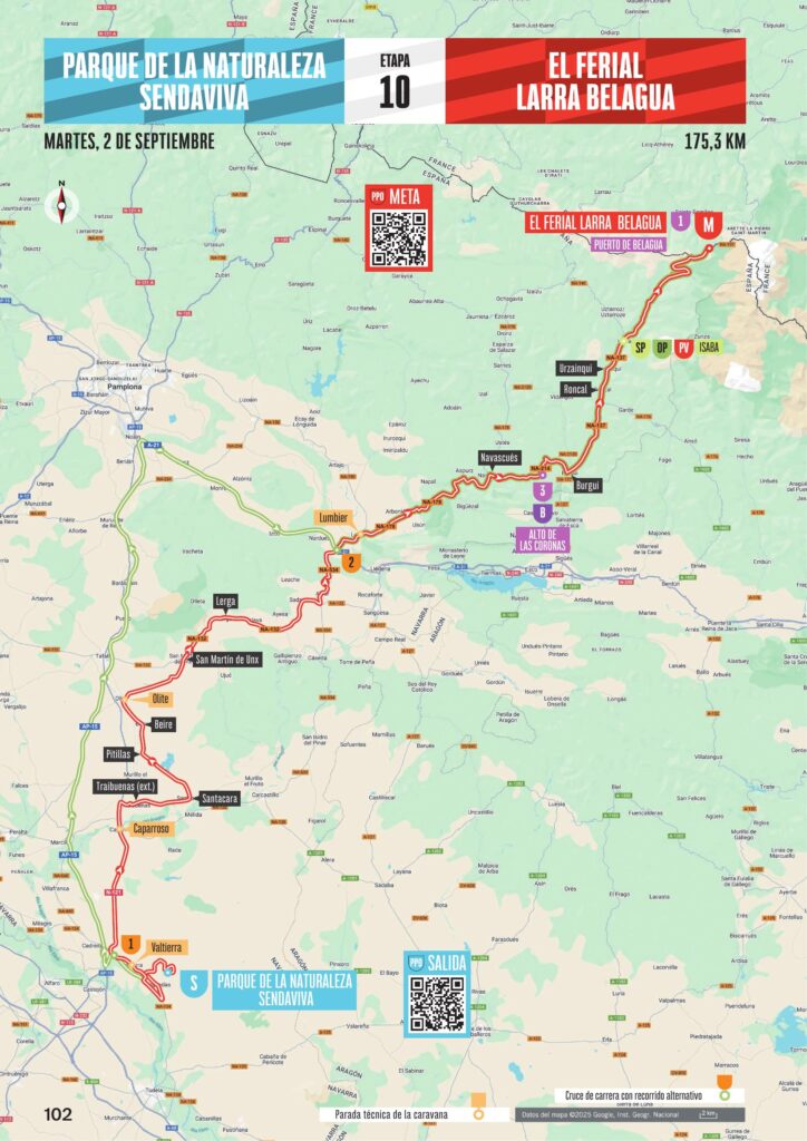Die zweite Woche der Vuelta a España 2025 beginnt wie die erste endete: mit einer Bergankunft. Die zehnte Etappe führt vom Freizeitpark Sendaviva aus über 175,3 Kilometer zum Finale am Puerto de Belagua. Der rund zehn Kilometer lange Anstieg der 1. Kategorie war erstmals 2023 Teil einer Spanien-Rundfahrt. Damals gewann Remco Evenepoel die Etappe, die im Wintersport- und Wandergebiet in den Pyrenäen von Navarra nahe der spanisch-französischen Grenze endete, als Solist.