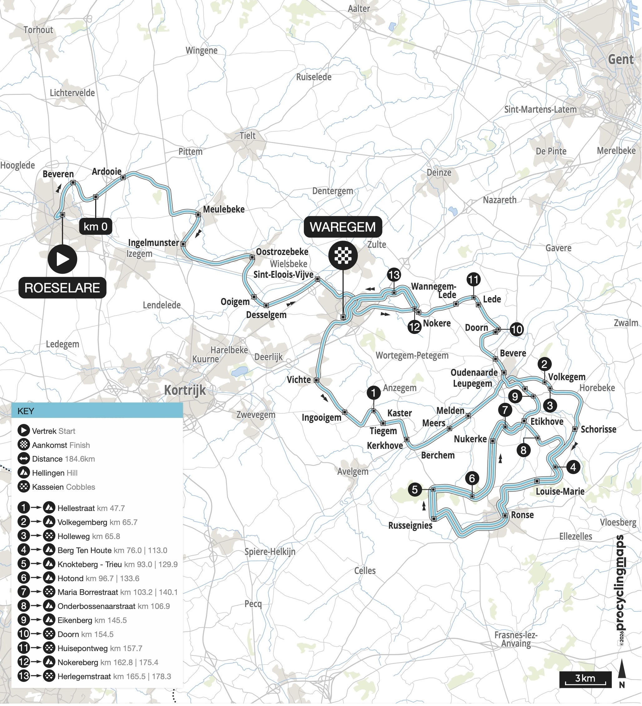 - Herlegemstraat (800 Meter) – Rennkilometer 165,5 km