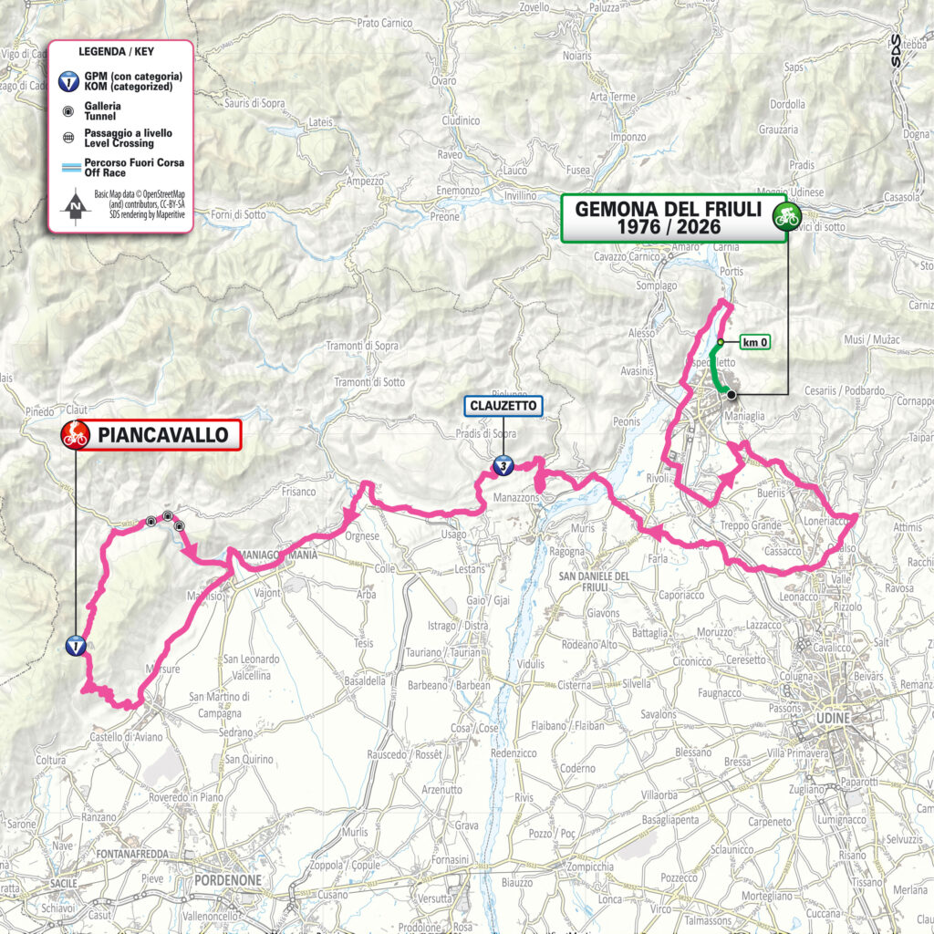 Die letzte Bergetappe des Giro d’Italia startet in Gemona del Friuli. Zunächst durchquert sie das Epizentrum des schweren Erdbebens in Friaul von 1976, dann nimmt sie Fahrt in Richtung Gebirge auf. Im Finale – auf den letzten 70 Kilometern – müssen die Profis gleich zwei Mal hoch nach Piancavallo ins Skigebiet. Der Anstieg der 1. Kategorie ist im Roadbook nach 132 Kilometern verzeichnet. Nach einer Schleife über den Lago di Barcis erreichen die Fahrer wieder Aviano. Dann beginnt die bereits erwähnte Finalsteigung über 14,4 Kilometer hinauf ins Skigebiet auf 1.290 Meter. Auch wenn die Etappe zunächst wenig spektakulär aussieht, kann die Teamstärke in Richtung Schlussteigung beziehungsweise im Flachstück entscheidend sein. Wer hier auf eine Relaisstation, also Helfer, zurückgreifen kann, kann nochmal richtig Boden gutmachen.