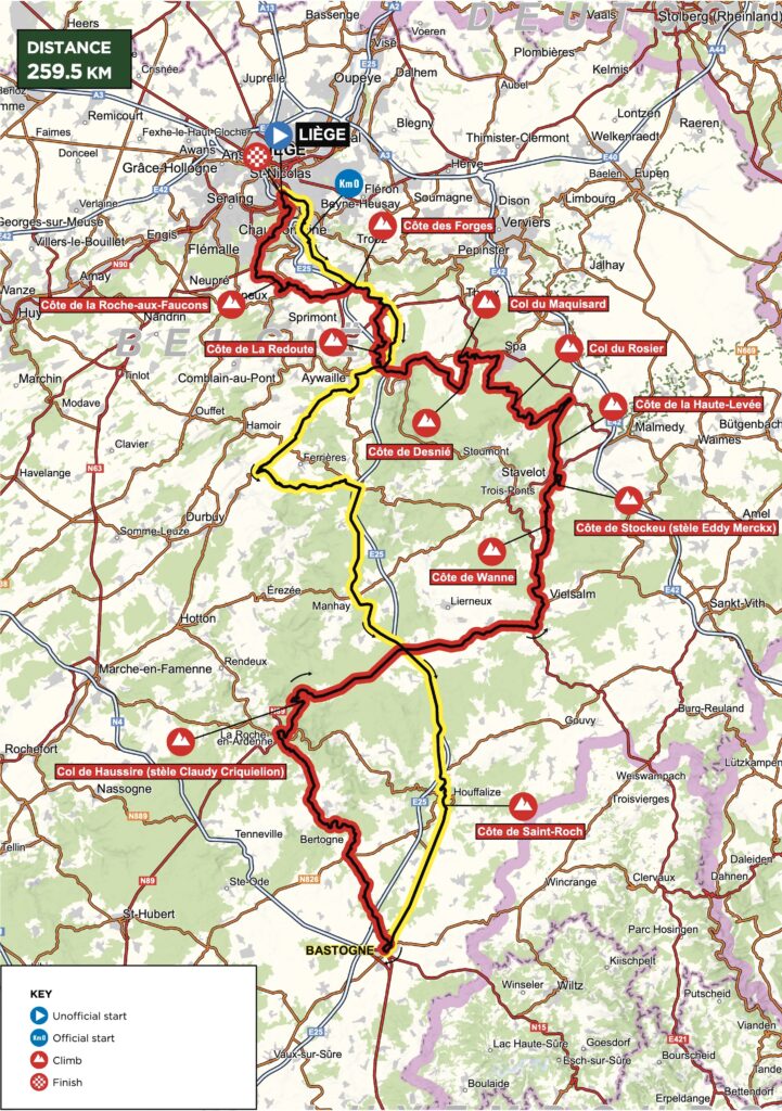 Die Strecke von Lüttich-Bastogne-Lüttich 2026